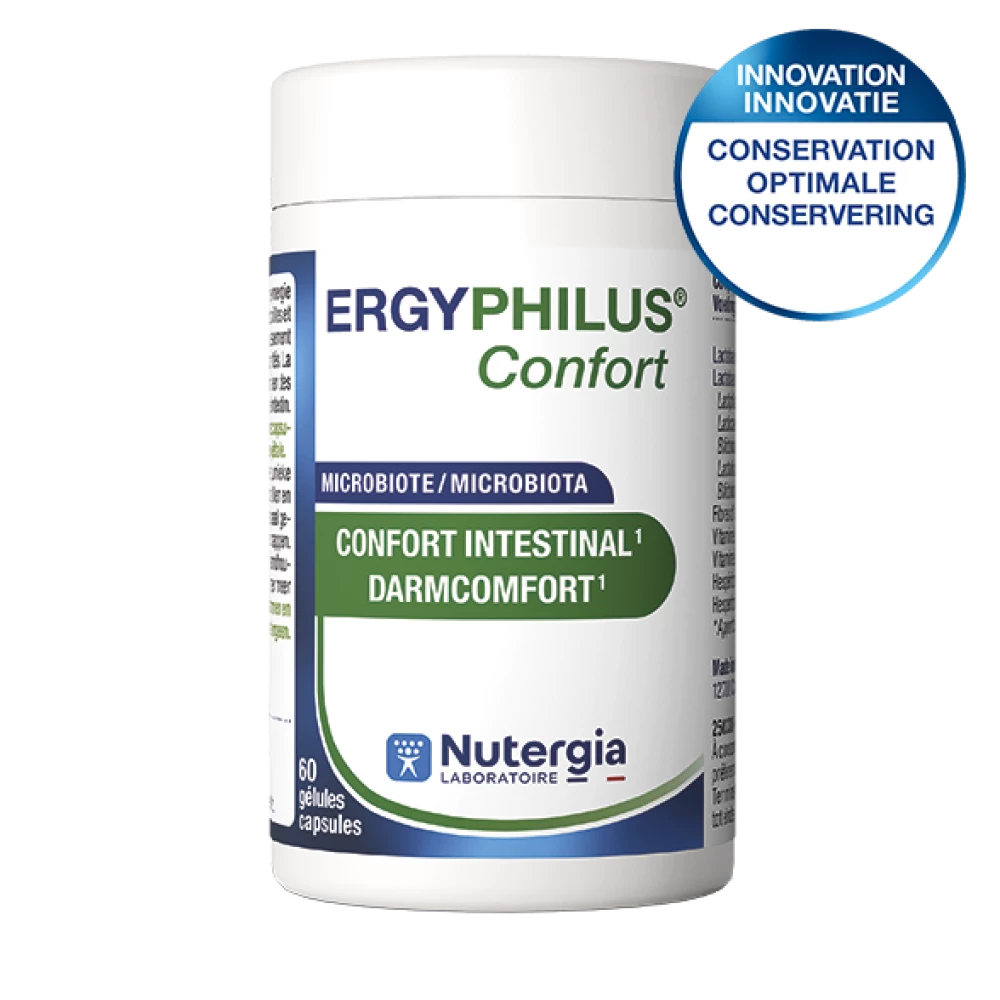ERGYPHILUS® Confort pourra être conseillé pour contribuer à l’équilibre de la flore intestinale par l’apport de lactobacilles et bifidobactéries et pour le confort intestinal.