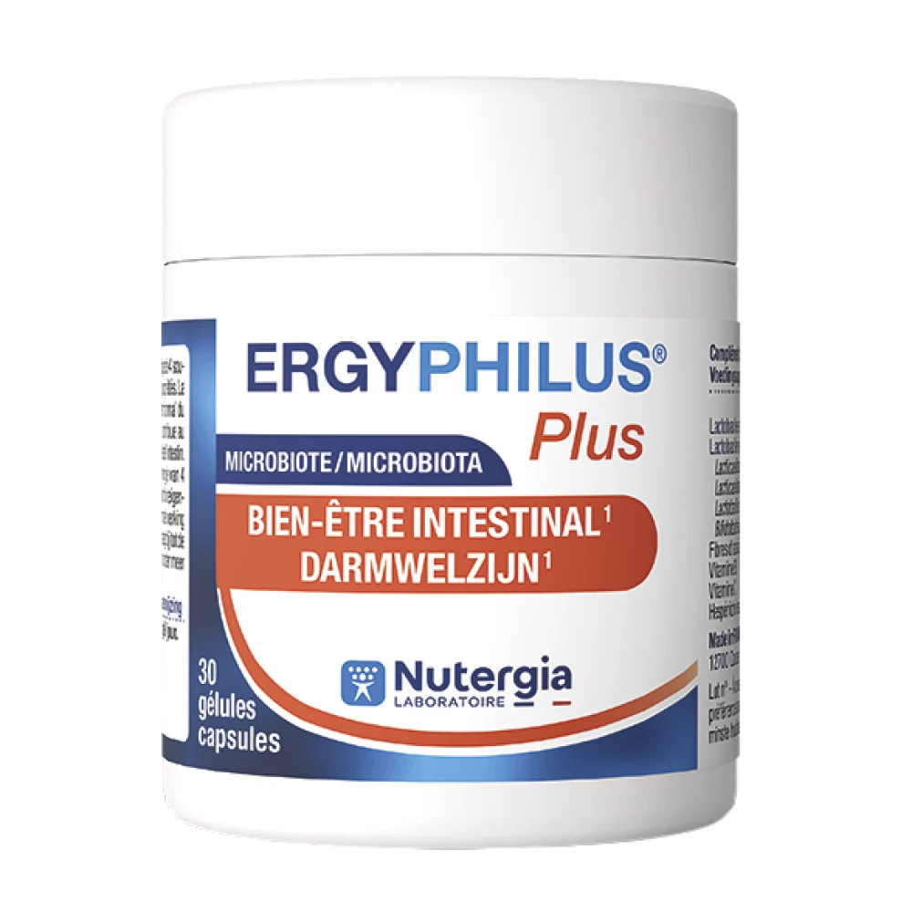 De darmmicrobiota omvat alle micro-organismen die in onze darmen leven. Zelfs op reis kunt u uw microbiota verwennen met ERGYPHILUS® plus. Neem het kleinste formaat met 30 capsules mee in uw EHBO-tas! Deze unieke synergie van 4 levensvatbare stammen lactobacillen en bifidobacteriën bevat eveneens vitamine C die bijdraagt aan de normale werking van het immuunsysteem.