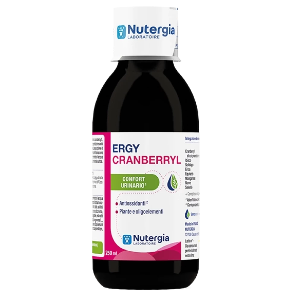 ERGYCRANBERRYL combina cranberry e solidago, equiseto e erica selezionati per le proprietà drenanti dei liquidi corporei e per la funzionalità delle vie urinarie.